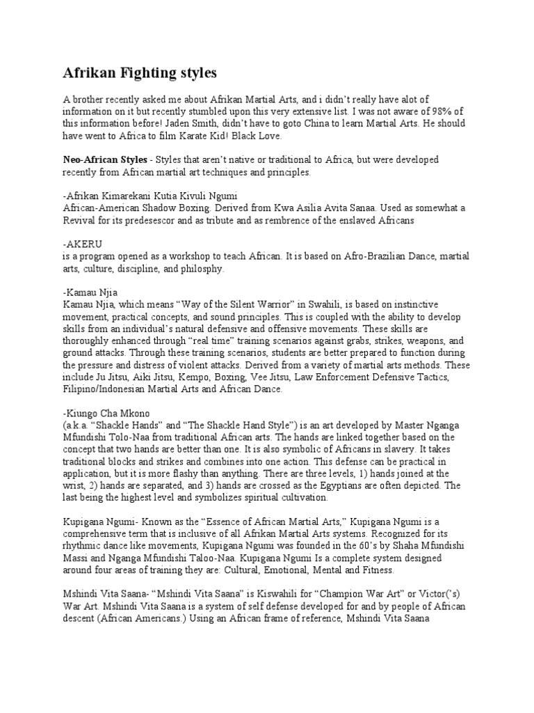 Afrikan Martial Arts Fighting Styles Pdf Karate Judo
